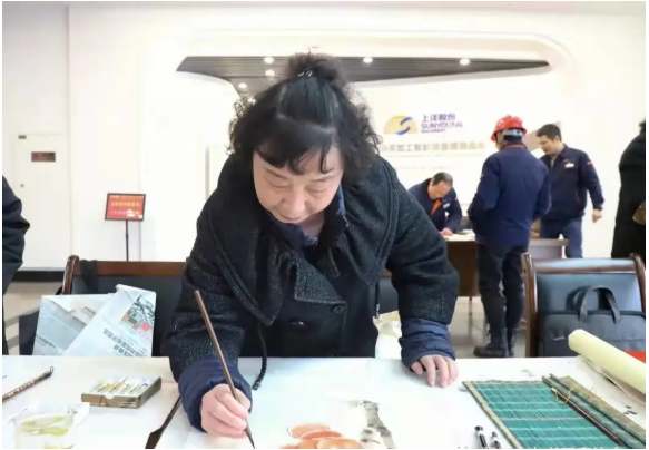 此次活動,公司邀請了來自市書法協(xié)會的書法老師們蒞臨現(xiàn)場,展示書法藝術(shù)精髓,弘揚中國特色的傳統(tǒng)民間文化。“春風(fēng)浩蕩展鴻圖、虎步奔騰開勝景”、“茶緣廣裕業(yè)有孚、新程奮進正當(dāng)時”......老師們妙筆生花,一對對喜氣的虎年春聯(lián)、年畫,烘托出濃濃年味;一句句美好的祝福,伴著墨香暖人心扉。上洋家人們趁工作休息間隙紛紛前來挑選心儀的虎年春聯(lián)、年畫,與老師們合影留念,現(xiàn)場一片溫馨祥和的喜慶氣氛。