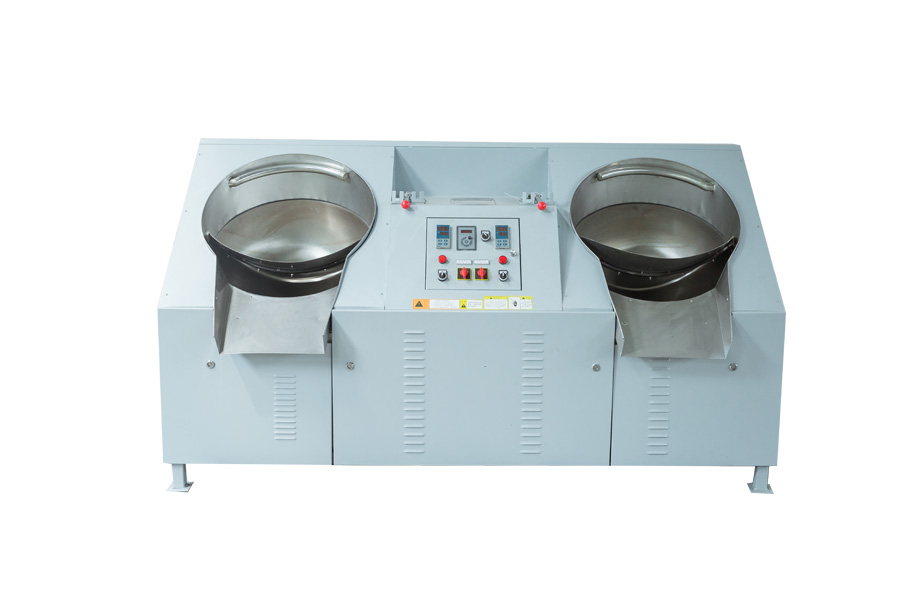 (2)、雙鍋曲毫炒干機(jī)適用于各類卷曲型、球型名優(yōu)茶的做型炒制作業(yè)。目前市場(chǎng)上有50、60兩種鑄鐵鍋和壓制鍋兩種,壓制鍋外形更好,但在加熱后易變形,引起抄板和鍋?zhàn)涌ㄋ阑蜷g隙變大,從而增加碎茶或炒制茶葉外形不緊,鑄鐵鍋不存在這種現(xiàn)象,我公司一直使用鑄鐵鍋,50型采用掛擋調(diào)速、60型采用變頻調(diào)速。